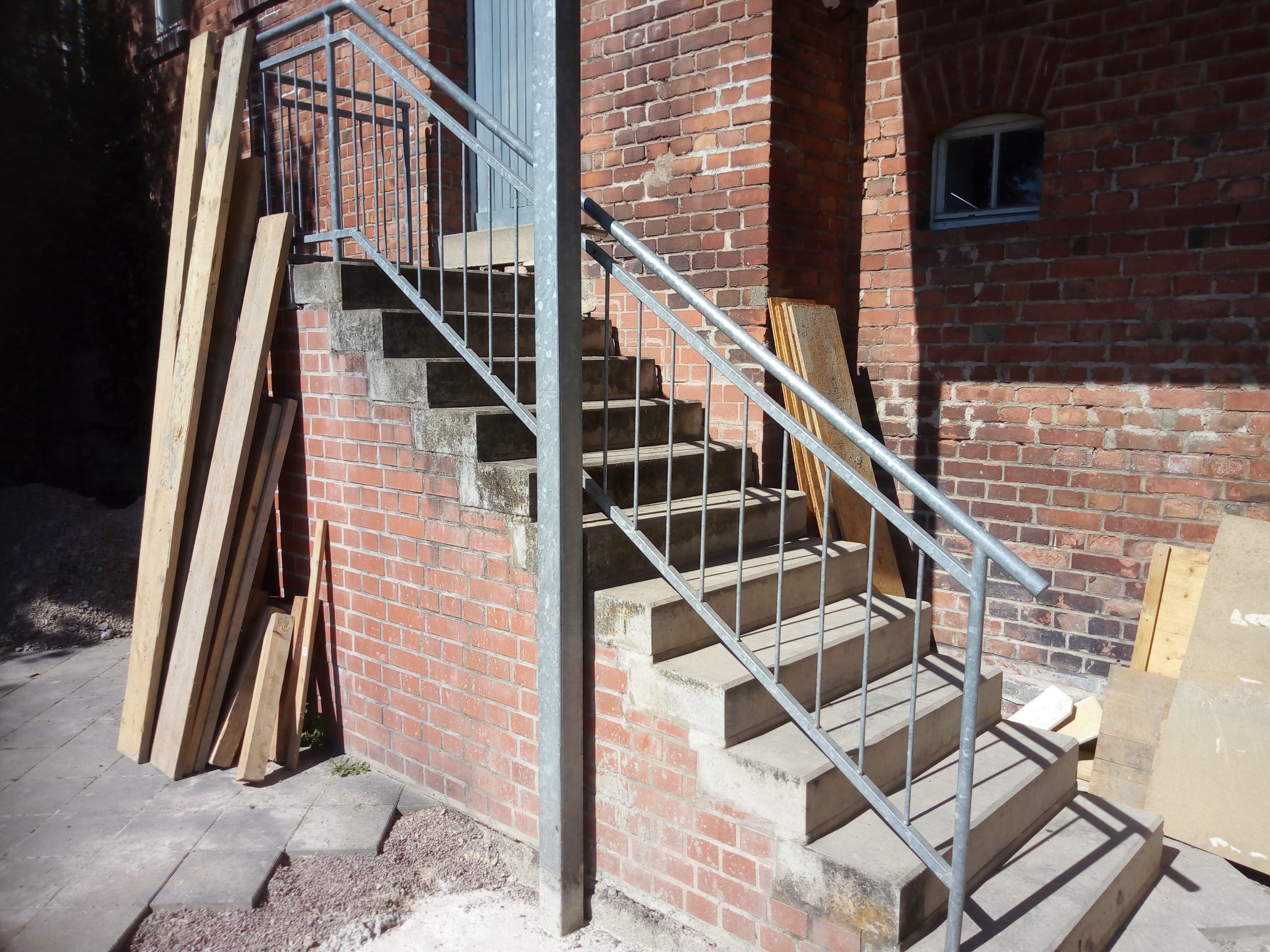 IMG_20180619_101417 ← Zurück Weiter → Vorhandene Treppe, die durch Stahltreppe zu ersetzen ist, das Geländer ist wiederzuverwenden.